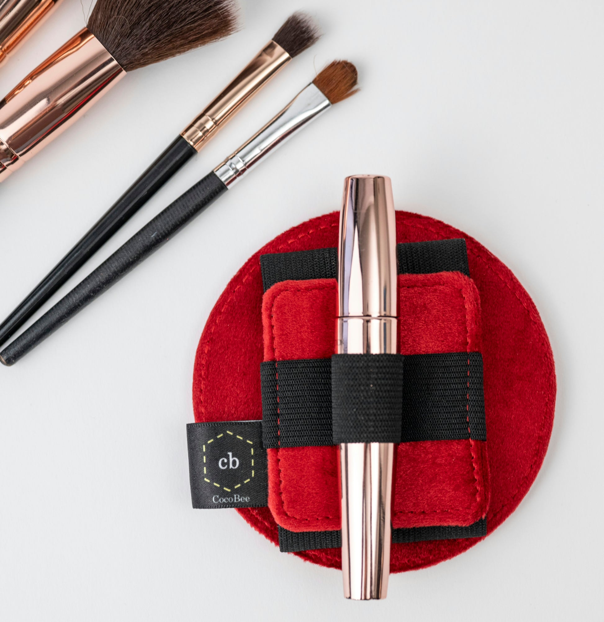 The world's first and one of its kind combi mirror; this luxury tool is designed to make applying or touching up makeup on the go easier and more convenient. The mirror measures 90mm and is on one side of the tool, while the other side has three generous slots for storing your favorite lip liner, mascara, and even powder brush.